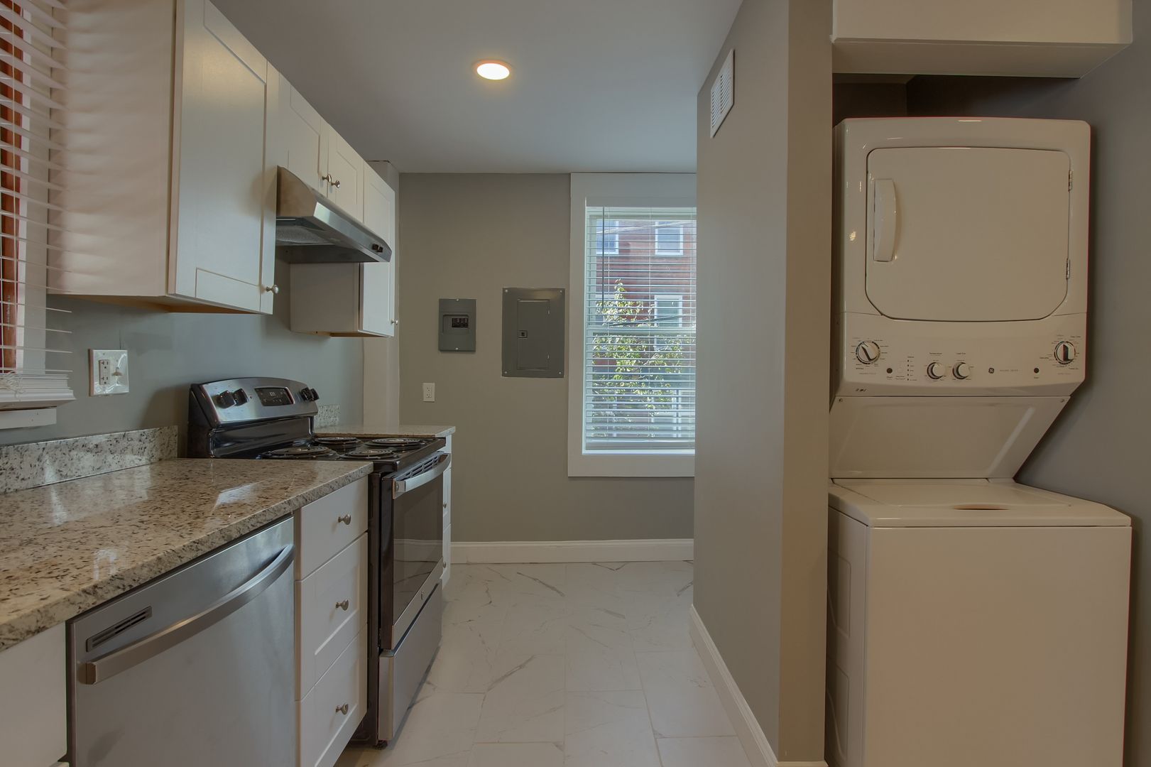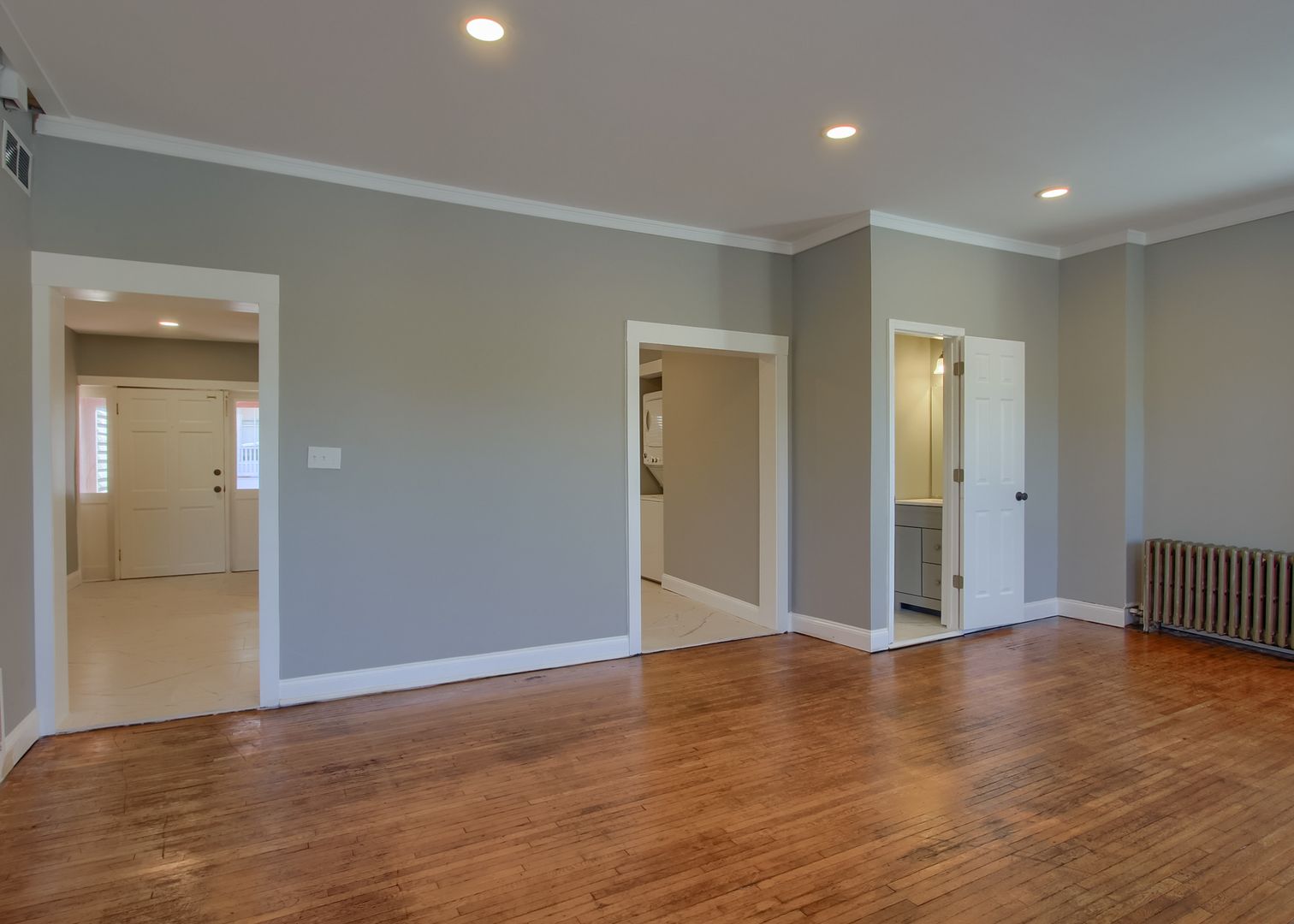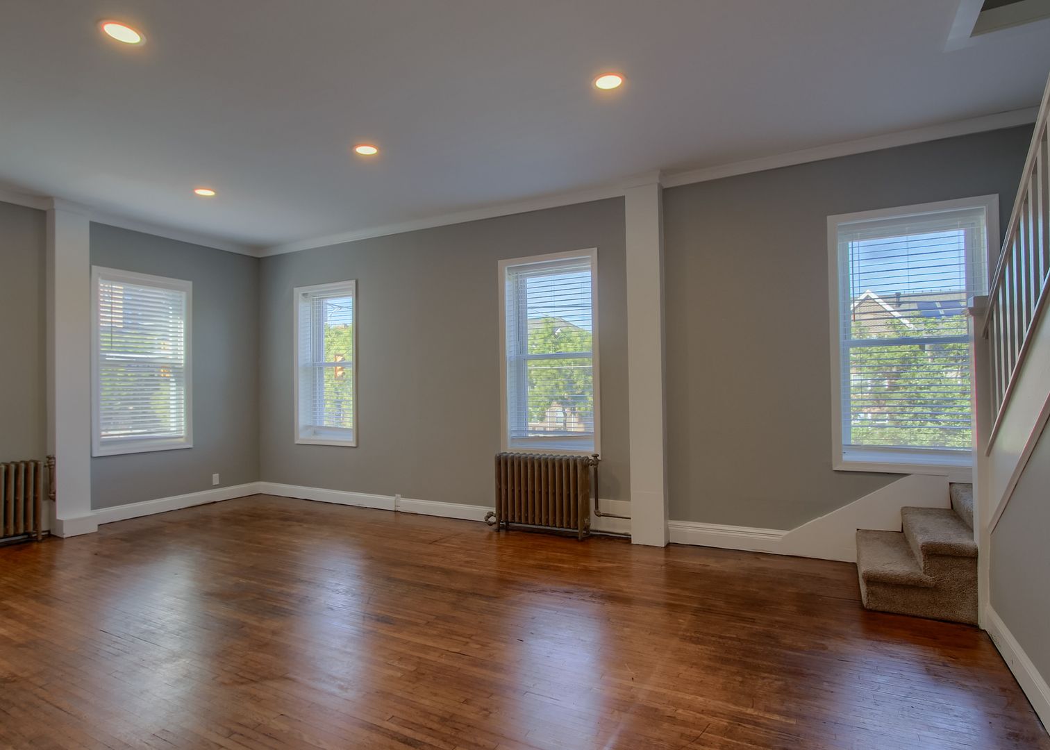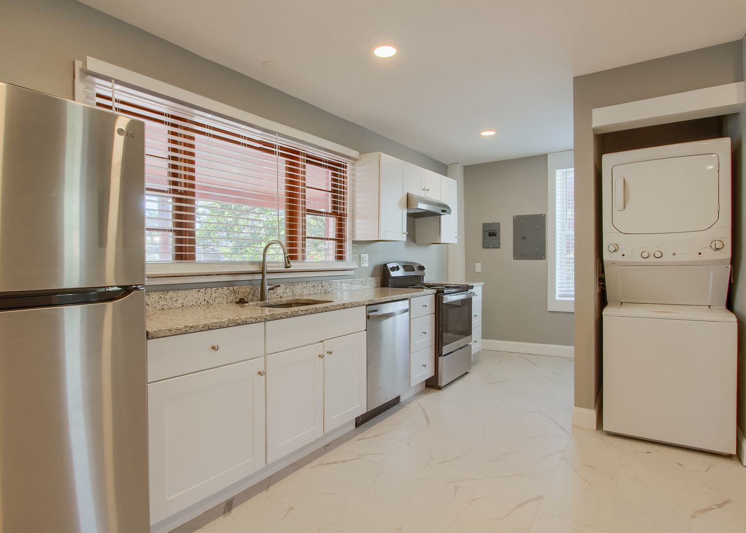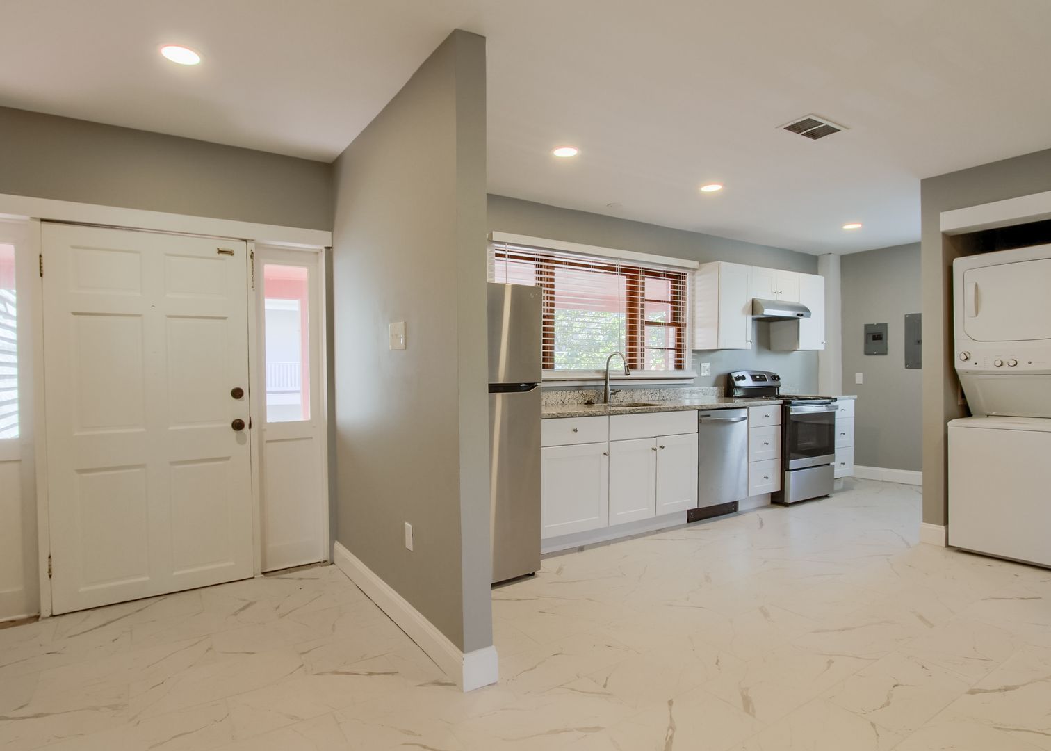 This large 2nd & 3rd floor apartment has been completely renovated including new kitchen with granite countertops and ss appliances and 2 completely remodeled bathrooms. Central AC just added! Both living room and kitchen are quite spacious. Private laundry is within the unit. 2 Parking spots are available for an additional $175 per month.