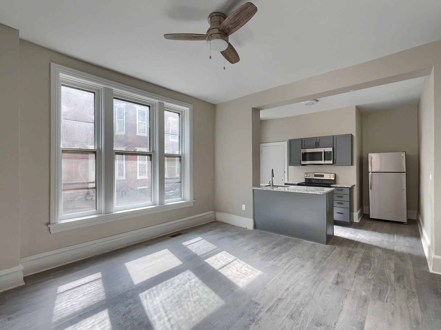 This spacious two bedroom, one bathroom is located in the heart of Midtown, just blocks from the city’s best kept shops, bars, and restaurants. Step into a massive kitchen/dining room space that glimmers in natural light from the huge windows. Modern cabinets, granite countertops, and stainless steel appliances create a stunning kitchen that opens into the living room. A long hallway beside the kitchen leads to the bedrooms, laundry room, and bright bathroom with subway tiled shower and granite countertop.