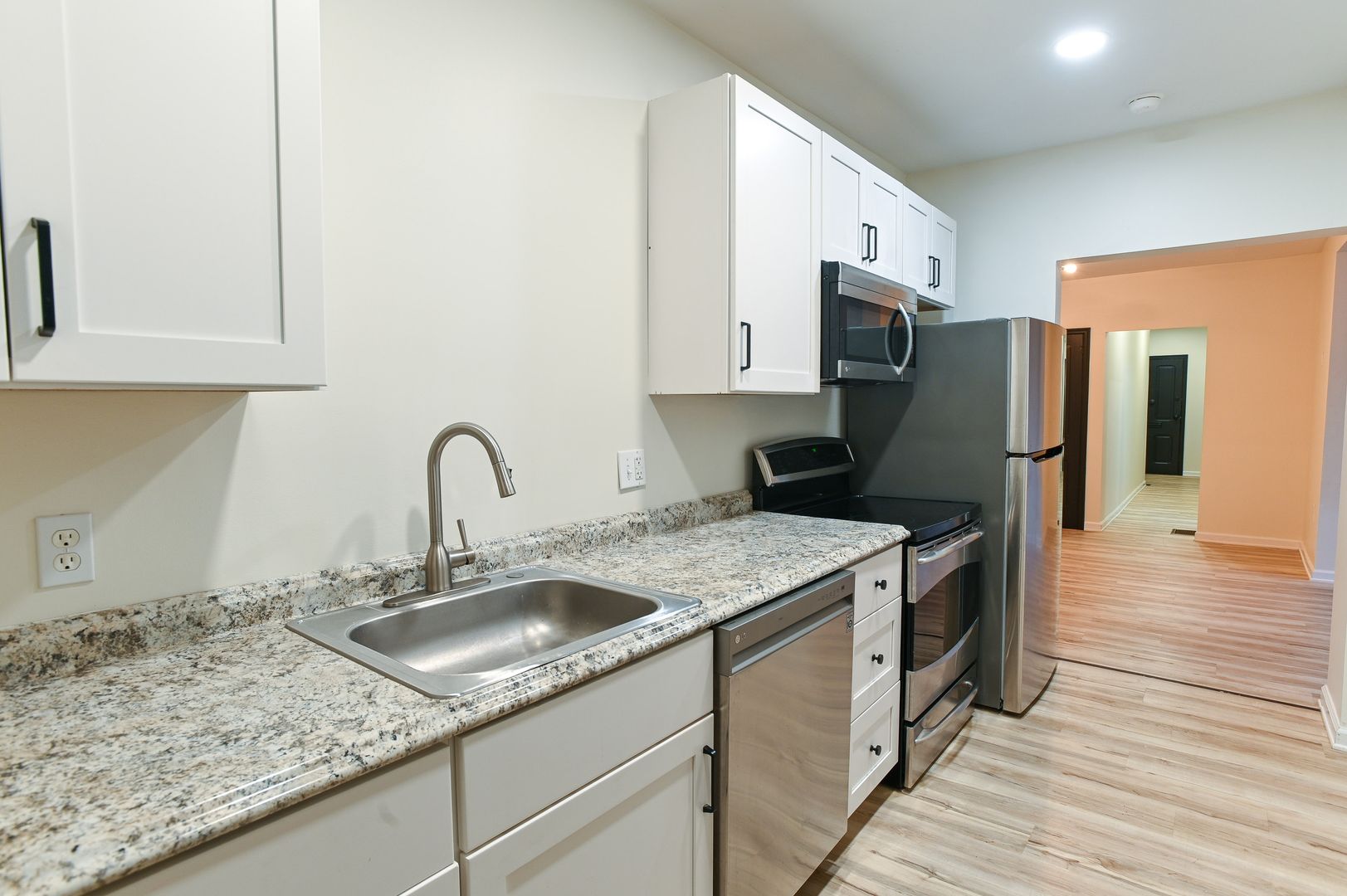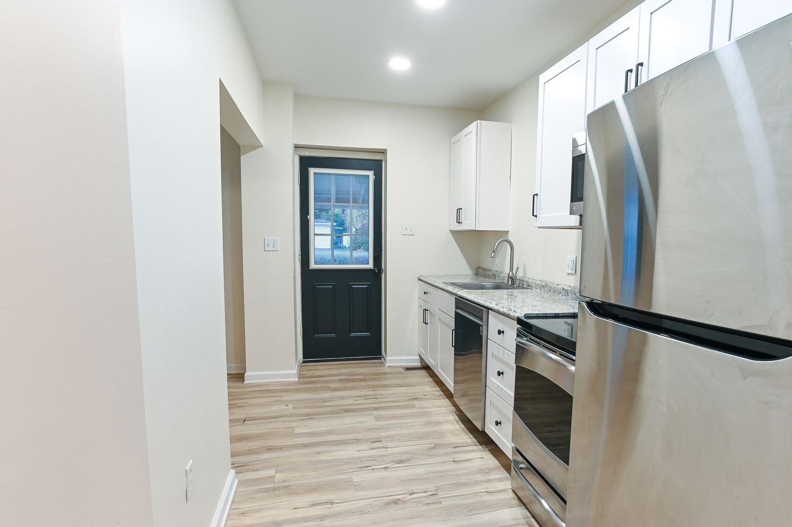 Welcome to the Large 3 Bedroom Apartment in Hummelstown, where comfort meets style. This first-floor apartment offers a generous living space with three spacious bedrooms and two full bathrooms. The primary bedroom boasts a large ensuite and closet, providing ample storage space. The apartment is bathed in natural light, enhancing the stainless-steel appliances and LVP floors throughout the living spaces. The designated dining area and nook off the living room offer potential for a cozy office space. The carpeted bedrooms add a touch of warmth and comfort to the home. The apartment also features a laundry room equipped with a washer and dryer for your convenience. Outside, you'll find a back porch and yard, perfect for enjoying the outdoors. The apartment also offers off-street parking and is accentuated with stylish black trim and brick accents. Experience the perfect blend of space, function, and style in this large apartment in Hummelstown.