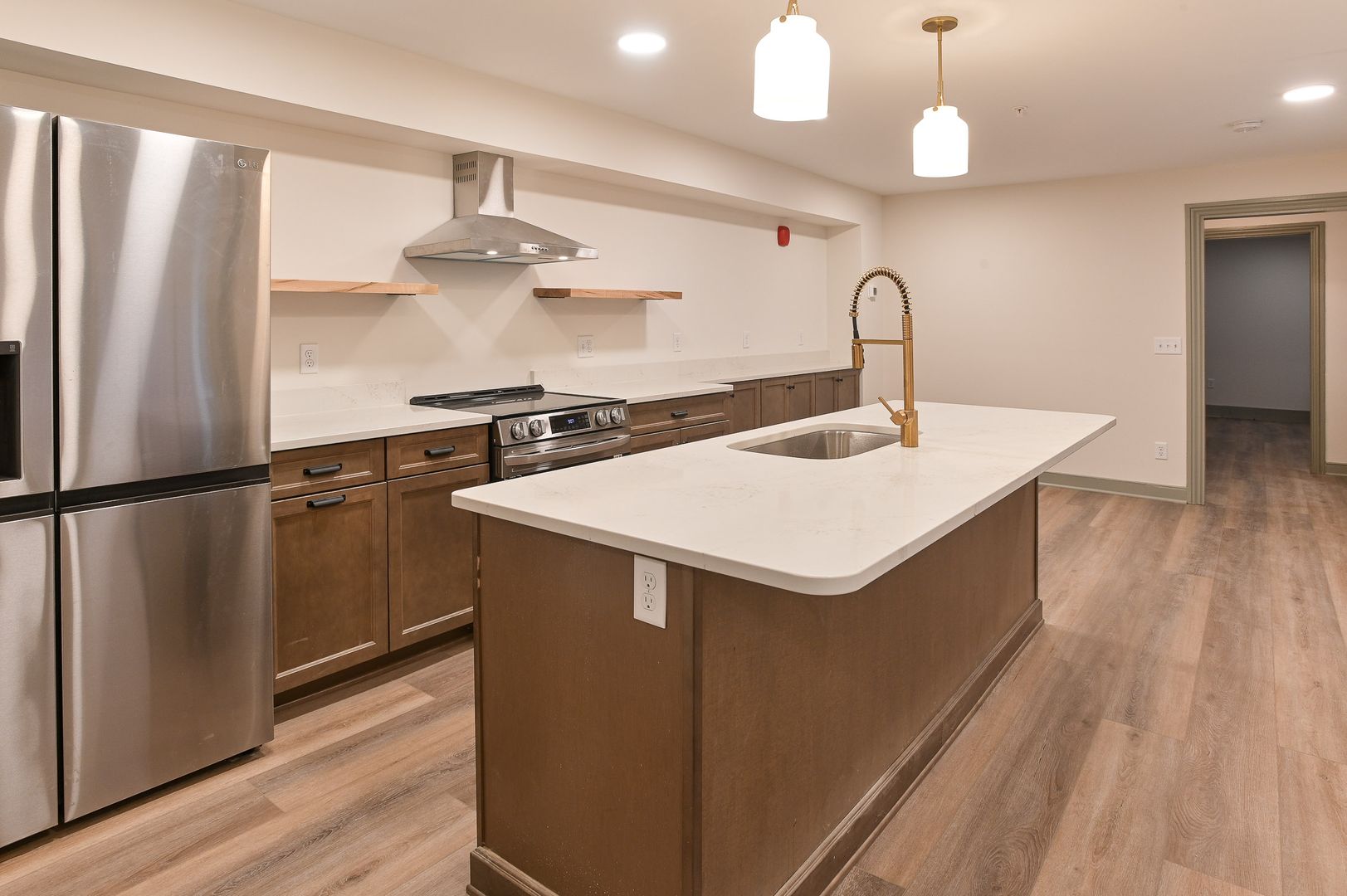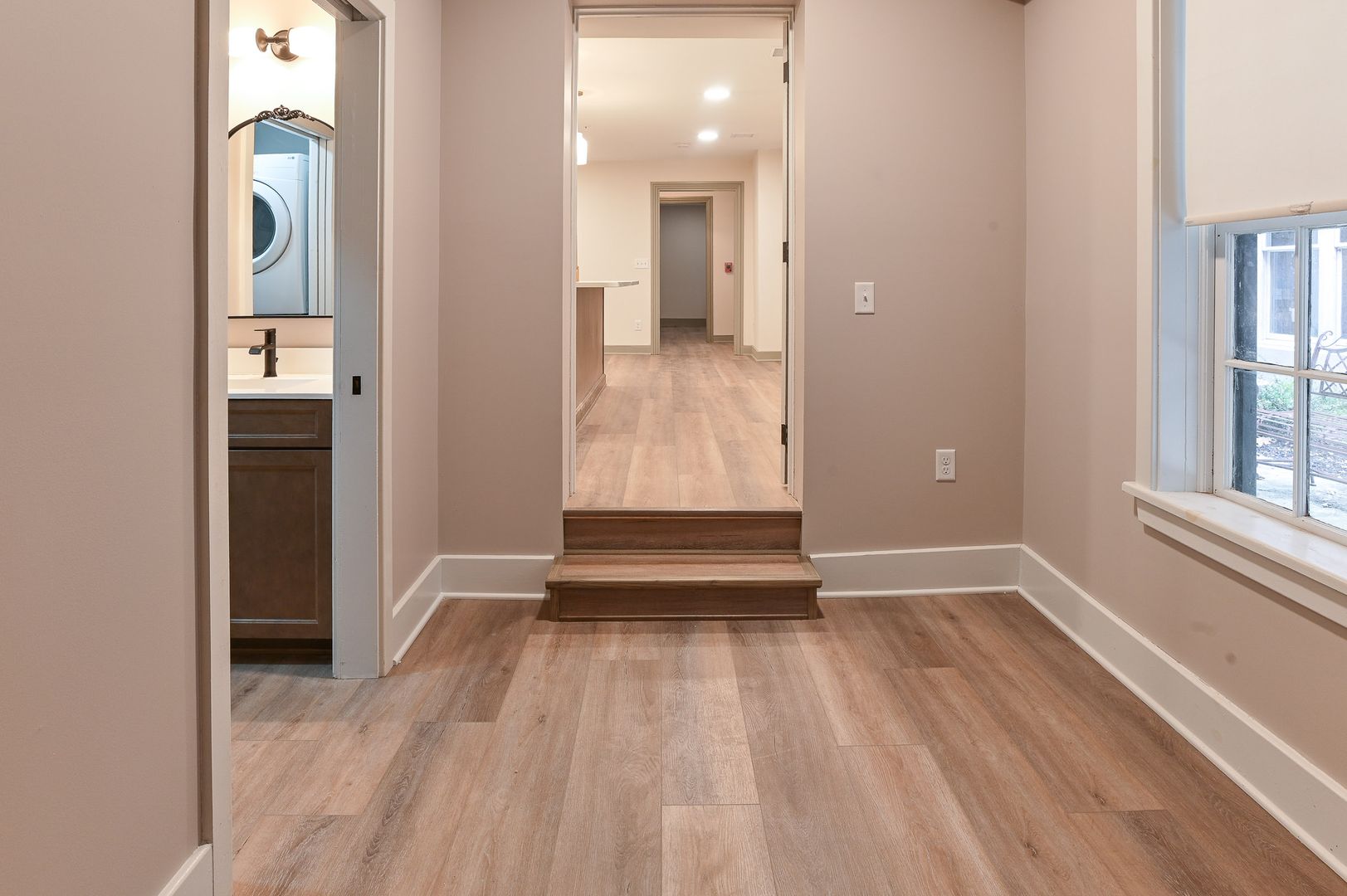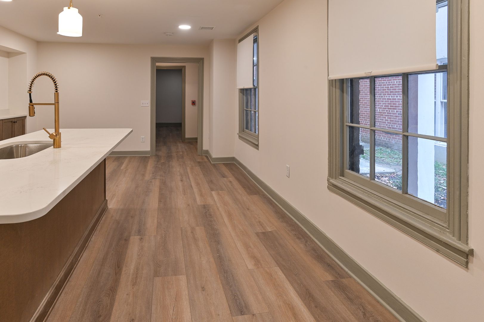 Welcome to your new luxury apartment in the historic heart of Harrisburg. This stunning two-bedroom, two and half-bathroom residence offers an abundance of space and light, with three floors of living area and short walk to Riverfront Park. The spacious kitchen is perfect for entertaining, featuring top-of-the-line finishes and a huge kitchen island with room for seating. The kitchen is equipped with stainless steel appliances, and the entire apartment boasts beautiful LVP flooring. The second and third floors each host a bedroom with an ensuite, and a private balcony providing a private sanctuary within your home. The apartment also offers ample closet space, in-unit laundry area on the first floor, a powder room and a bonus space for an office. The building's common area is a relaxing and beautiful space, perfect for unwinding after a long day. Experience the perfect blend of luxury and comfort in this exceptional apartment.